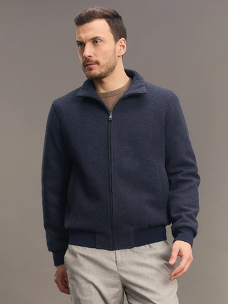 - Куртка бомбер из пальтовой ткани на тонком утеплителе. Центральная застежка на металлической молнии, боковые карманы с листочкой, воротник-стойка с трикотажной вставкой.