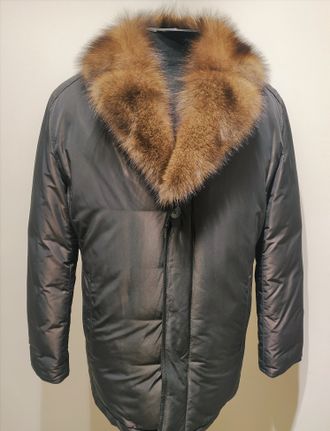Классическая зимняя куртка с меховым английским воротником, скрытая застежка на пуговицах.