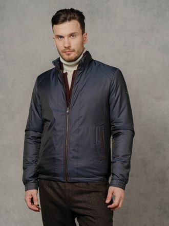 Укороченная куртка-бомбер с ультралегким утеплением. Отделка из ткани, имитирующей замшу. По низу куртки и на манжетах выполнены вставки с эластичной тесьмой.