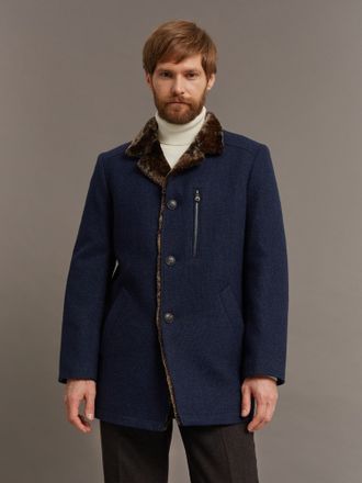Утепленное пальто полуприлегающего силуэта в стиле casual с отделкой из искусственного меха, имитирующего овчину.