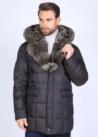 - Модель: удлинненный пуховик на пуговицах, английский воротник меховой переходит в капюшон, мех и капюшон отстегиваются